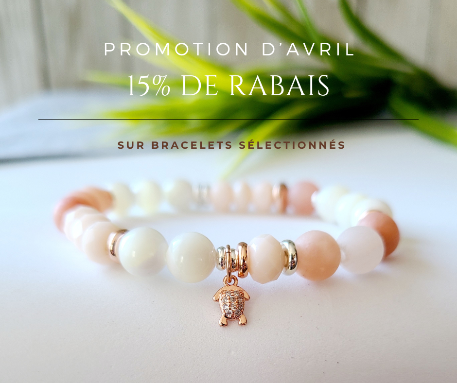 En avril, je vous gâte : livraison gratuite sur mes créations et un 15% de rabais sur bracelets sélectionnés 💛
